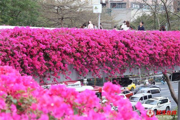 一座天橋,半城花事。春日來(lái)臨,廣州市內(nèi)多處人行天橋上的簕杜鵑(又稱三角梅)競(jìng)相綻放,粉白、水紅等花色絢麗,城市天橋搖身一變,化作一座座“空中花廊”。 其中,東風(fēng)中路與小北路交界的人行天橋尤為引人注目,粉白色簕杜鵑如瀑布般傾瀉而下,憑借獨(dú)特的新花色“圈粉”無(wú)數(shù)。五羊邨人行天橋上的水紅簕杜鵑同樣迎來(lái)盛放期,花團(tuán)錦簇,滿橋春意,宛如一幅流動(dòng)的花海畫(huà)卷,吸引市民游客駐足拍照。 |